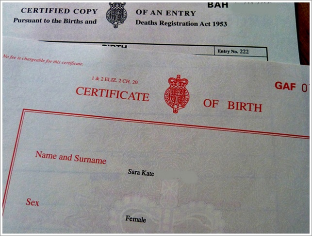 Procedura rejestracji jest dość prosta tutaj, najpierw należy zadzwonić do urzędu (Registration Offices), który zajmuje się wydawaniem aktów urodzenia i umówić się na godzinę na wizytę. Następnie odbyć rozmowę z pracownikiem tegoż biura w celu podania danych osobowych i innych potrzebnych i koniecznych. Można uzyskać w tej sposób dwa akty urodzenia, jeden pełny, drugi skrócony, w tylu kopiach ilu się chce. Koszt jednego pełnego aktu wynosi 4 funty za sztukę, akt skrócony jest za darmo.